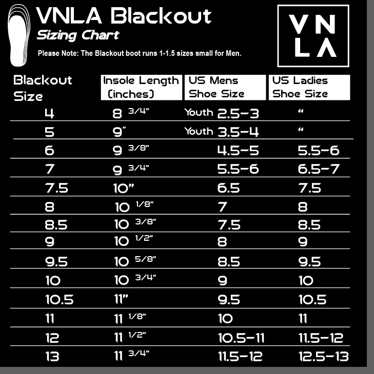 SIZING NOTE: The Blackout boot runs 1 size SMALL for men. Please order 1 size up from your normal shoe size. If you wear a 1/2 size and a 1/2 size is not offered, order UP a full 1.5 sizes. For example, if you wear a Men's 11.5 shoe, order the Men's 13. Ladies can order their normal shoe size in this boot.